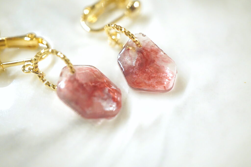 - アクセサリーパーツなどとつなげてレジンアクセサリーの完成です!